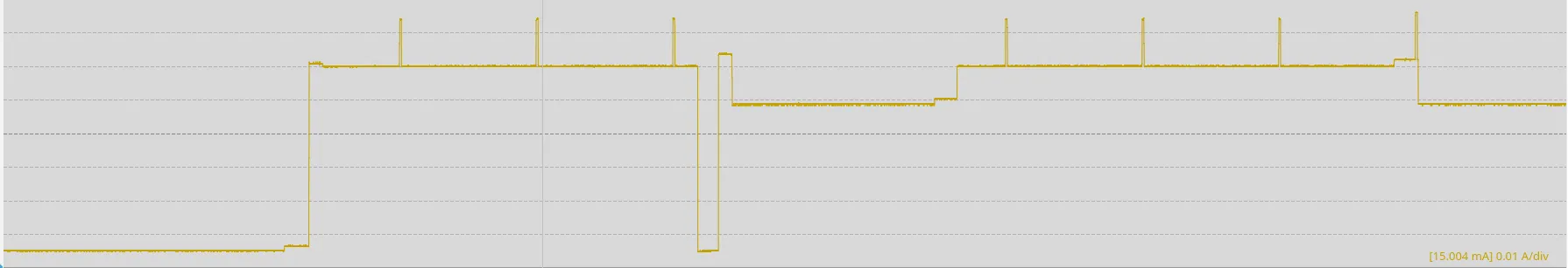 The provided 3.3 Voltage supply makes it extremely easy to analyze most microcontrollers. I just connected it to the battery terminal of the timer and opened PulseView. I selected the Nori power analyzer, now there was only one thing left to do, press start and use the device for a bit. What I saw completely explained why my batteries kept running out in a few weeks.