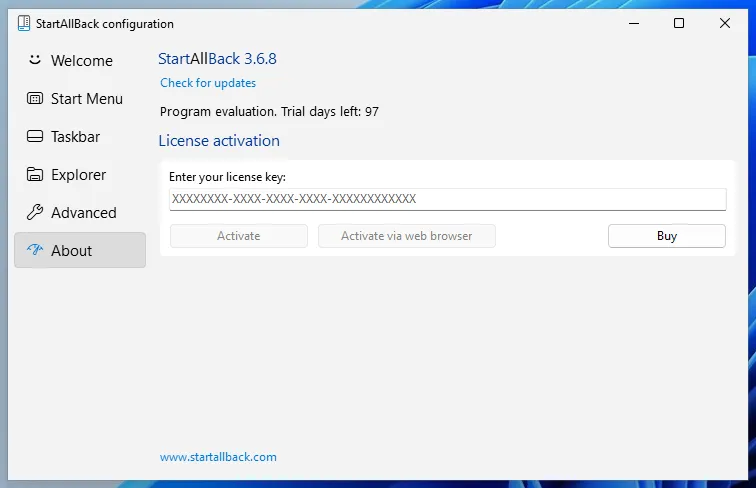 The StartAllBack trial works as follows: