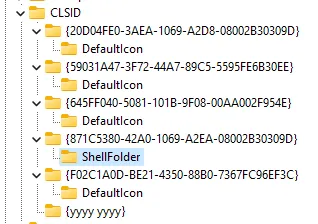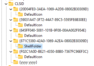 Key Name: HKEY_CURRENT_USER\Software\Microsoft\Windows\CurrentVersion\Explorer\CLSID\{yyyy yyyy}