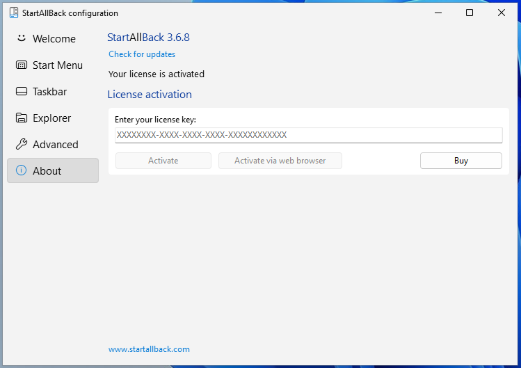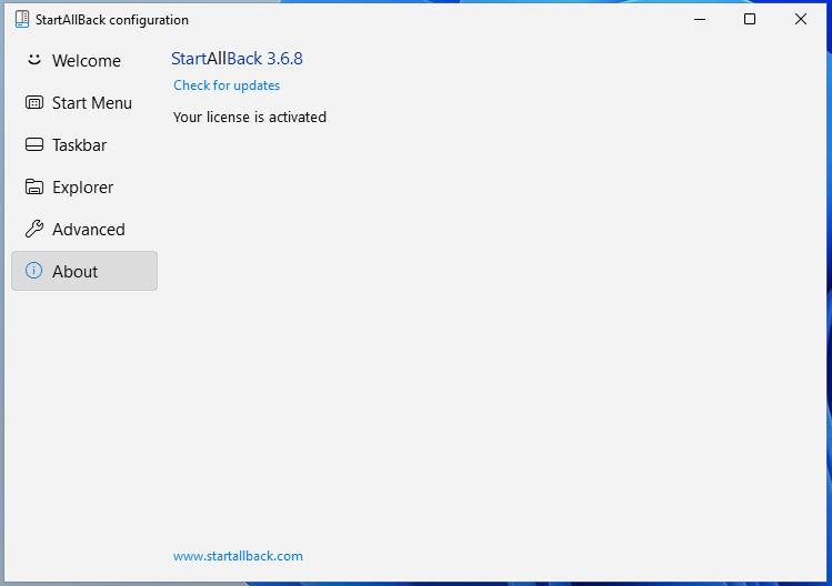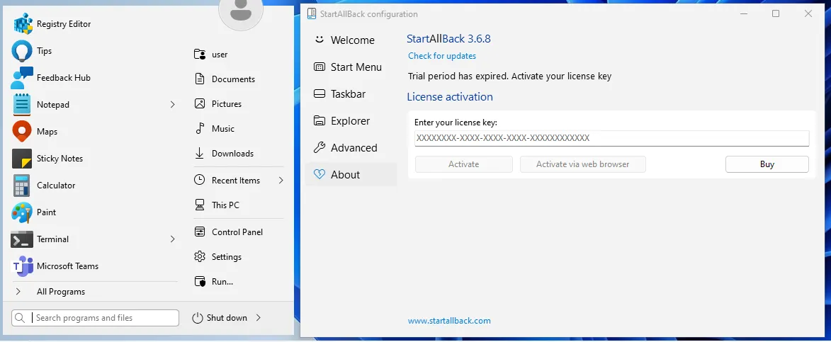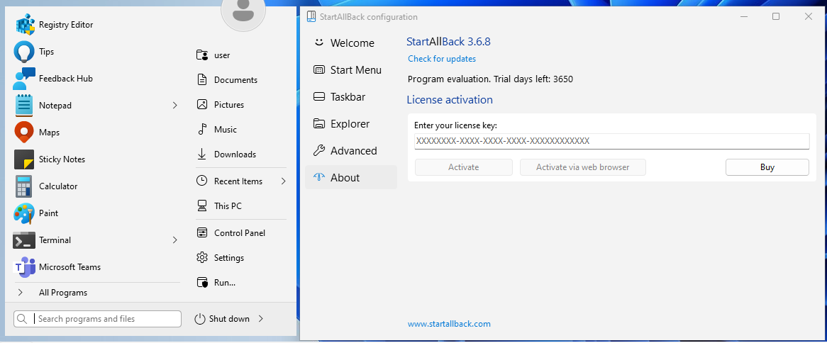 StartAllBackX64.dllfor the main implementationStartAllBackCfg.exefor the configuration and license activation