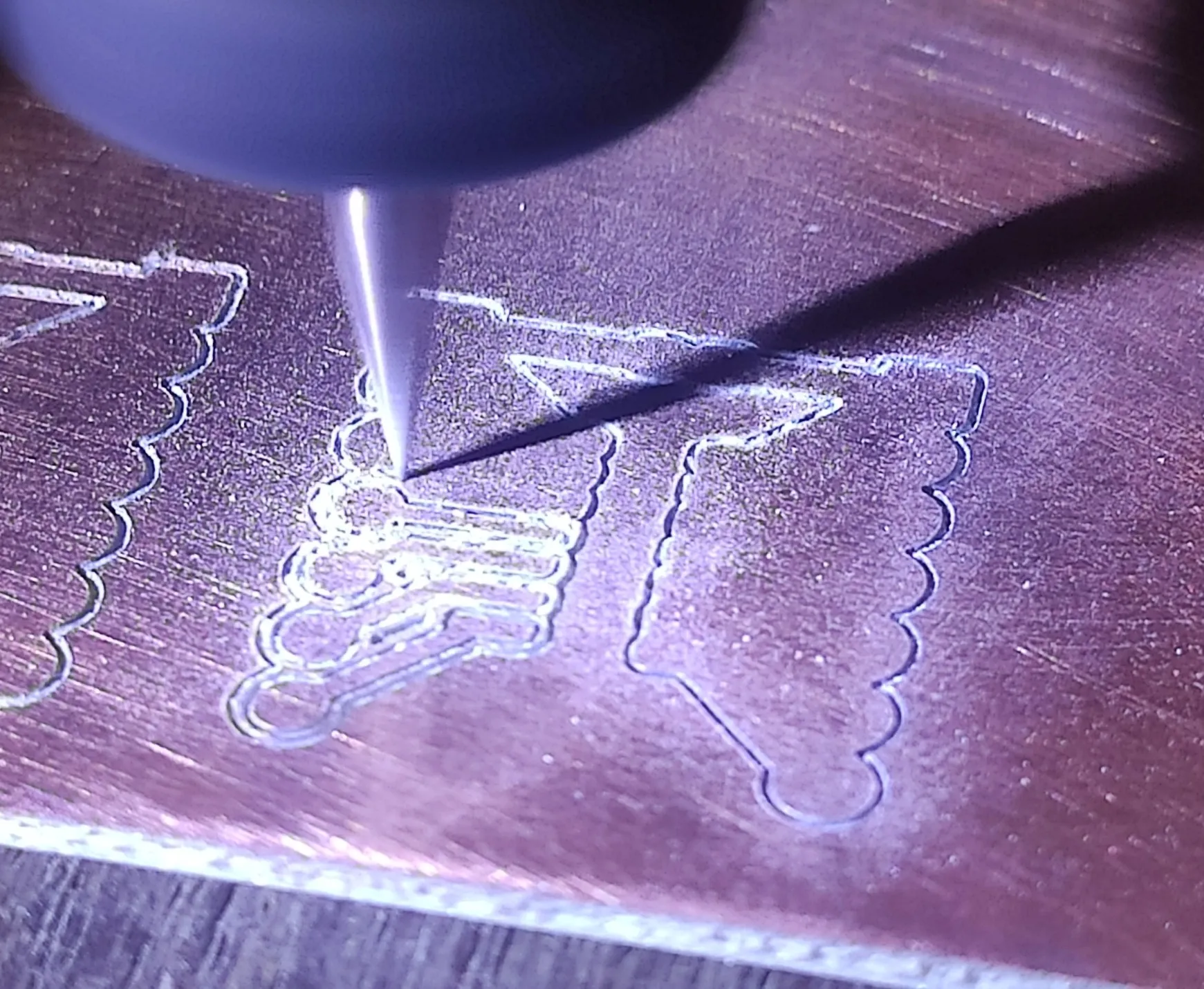 | 2022 | Etching using a spraypaint mask created using a desktop laser cutter (FeCl₃) |