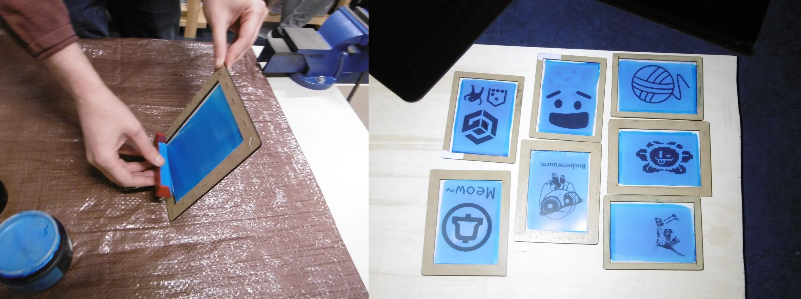 As I have described in a previous article, I was organising a small screenprinting workshop at my local hackerspace. The event itself was yesterday, and it was a lot of fun. In the end we had the capacity for 7 hackers to join the workshop. Everyone could design their own design (max. A6 size) and print it in one of the available colours.